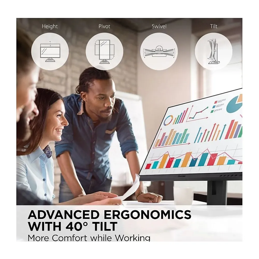 - ERGONOMIC STAND: Advanced ergonomics (40-degree tilt, swivel, rotate and height) for all-day comfort