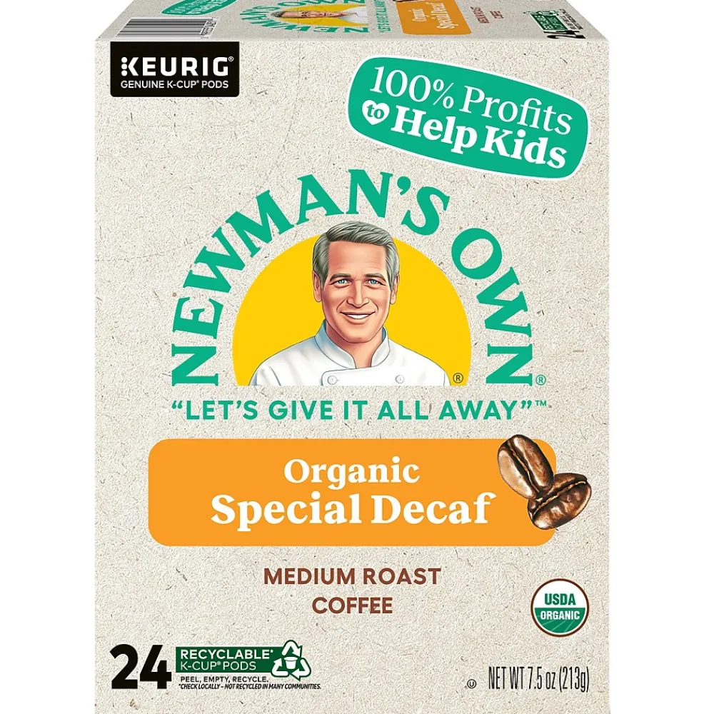 Want the great taste of Newman’s Own Organic coffee without the caffeine? Now you can with the Newman’s Own Organic Special Decaf, a decaffeinated, full-bodied blend of medium and dark roasts with a bold yet refined flavor and a strong yet smooth finish. The Newman’s Own Organic Special Blend Decaf delivers an inspired blend of medium-roasted Central American and darker-roasted Indonesian coffees for a rich and robust flavor with ample body that’s decaffeinated and 100% organic.