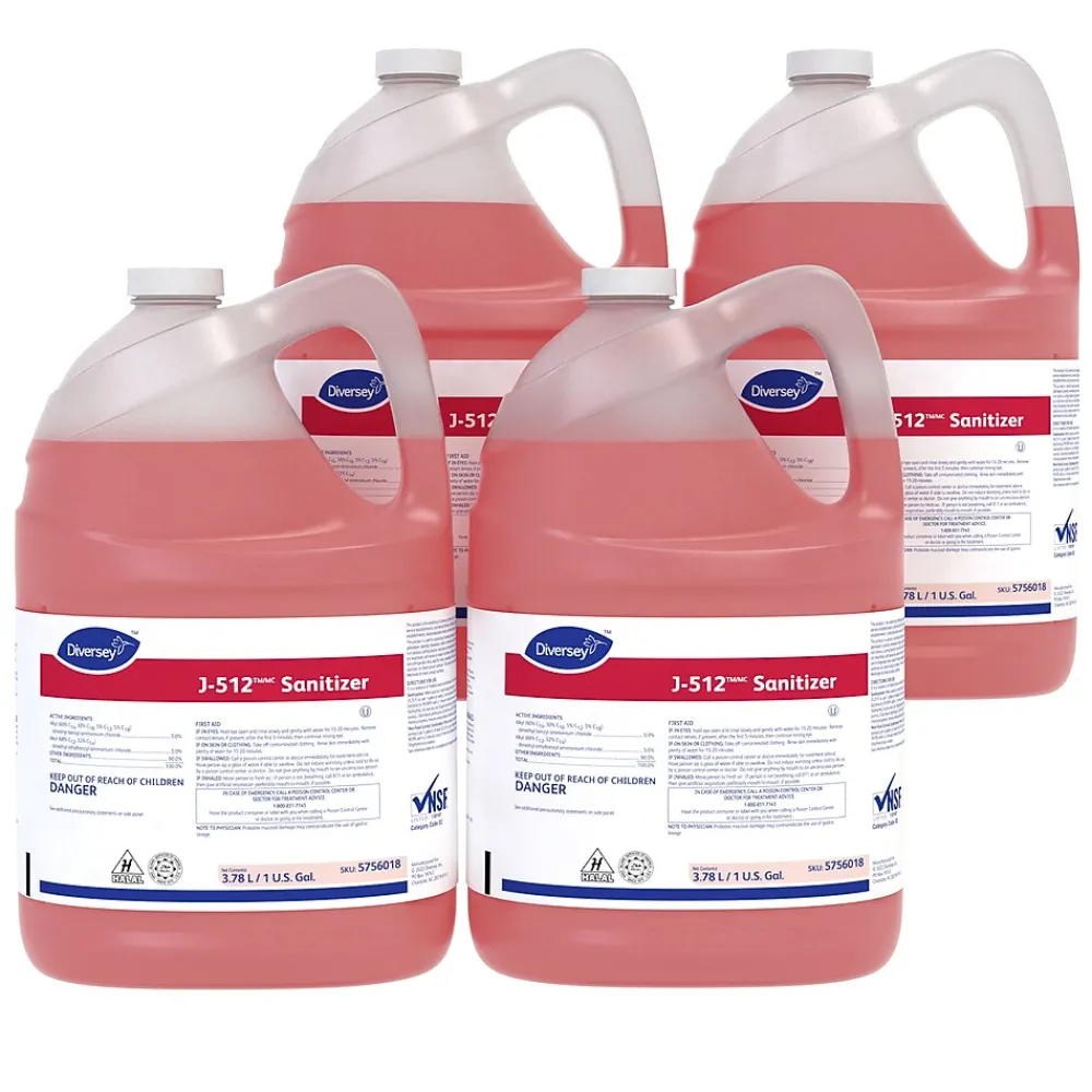 Keep your kitchen or breakroom up to code with this user-friendly sanitizer. The liquid’s red color lets you easily see where it has been applied, and the light quaternary scent hints at cleanliness. Thanks to a special no-rinse formulation, these 128-ounce jugs of J-512 sanitizer allow fast, fuss-free washing.