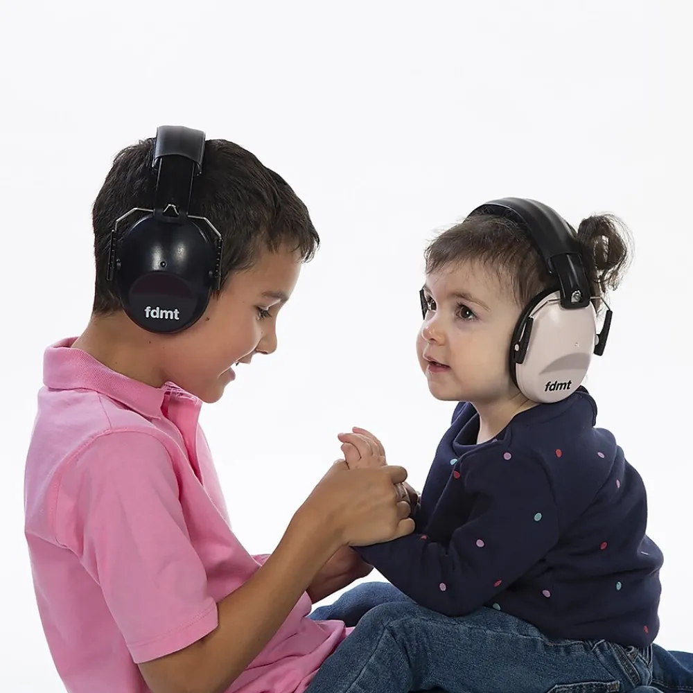 FDMT protective earmuffs are used to protect hearing and reduce noise distractions in a noisy environment. They attenuate loud and harmful noise, without excluding other ambient sounds. The sound level is considerably reduced to promote sustained attention and concentration. The stretchable headband and the pivoting, cushioned ear cups allow a head adjustment for both children and adults. Comfortable, robust and foldable, they fit into the included pouch for hygienic storage and convenient transport.