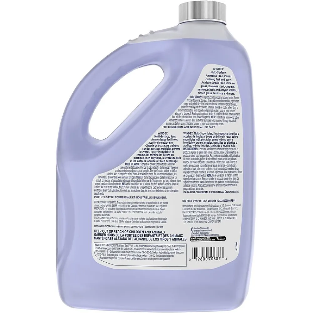 Windex Non-Ammoniated multi-surface cleaner offers the famous Windex cleaner streak-free shine with a refreshing scent. USES: Cleans the following areas/surfaces in your facility: Aluminum, Bathroom Fixtures (Chrome), Glass, Mirrors, Plastic, Sealed Marble, Sealed Granite, Stainless Steel, Windows and more.