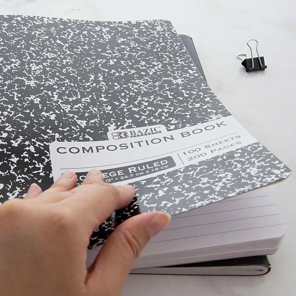 - SIMPLY NOTETAKING. Black marble composition notebooks come with 100 sheets of college-ruled paper. Ready for any assignment and take it with you on the go! Overall Size: 9.75″ x 7.5″.