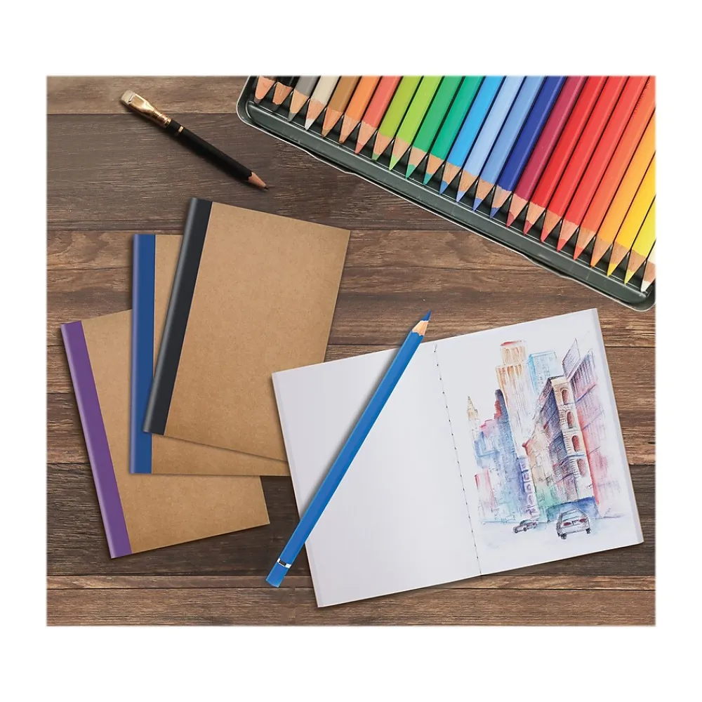 The Better Office kraft paper cover notebooks with 24 blank white sheets, rainbow-colored spines, and softcovers are perfect for sketching, drawing, doodling, and more.