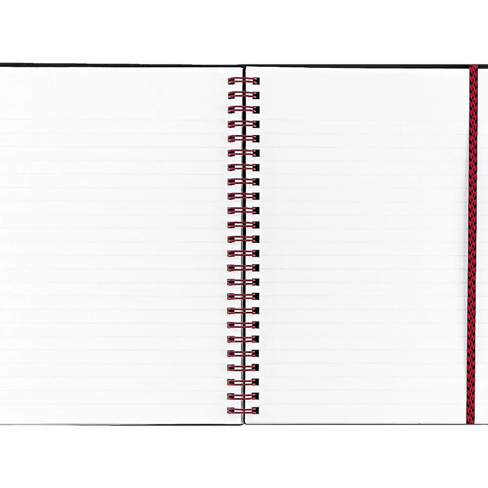 - Red twin wire binding adds a bold accent. Notebook can fold back or lie flat to offer a one or two page.