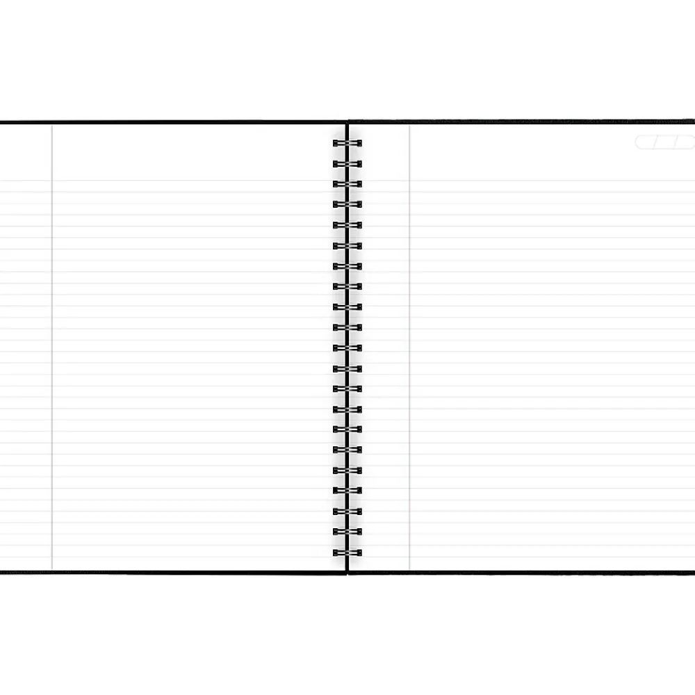 - Black, hardbound linen covers with twin wire binding protect notes and provide professional appeal. 8 7/8″ x 11″ page size