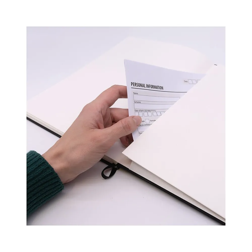 - Includes an expandable pocket inside the back cover