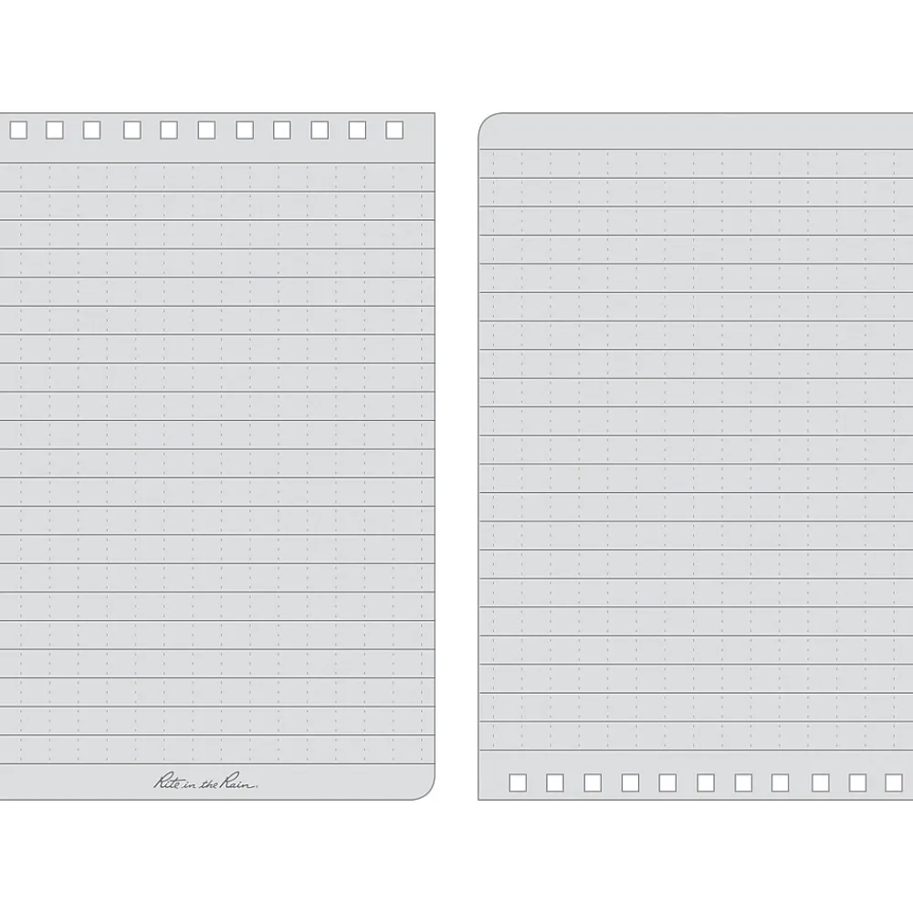 This is the truly go-anywhere, anytime, in any weather notebook. The Rite in the Rain All-Weather pocket notebook is conveniently sized to take with you on your outings. With a PolyDura cover and the 4″ x 6″ universal pattern, this 100-page (50-sheet) notebook is perfect for any situation.