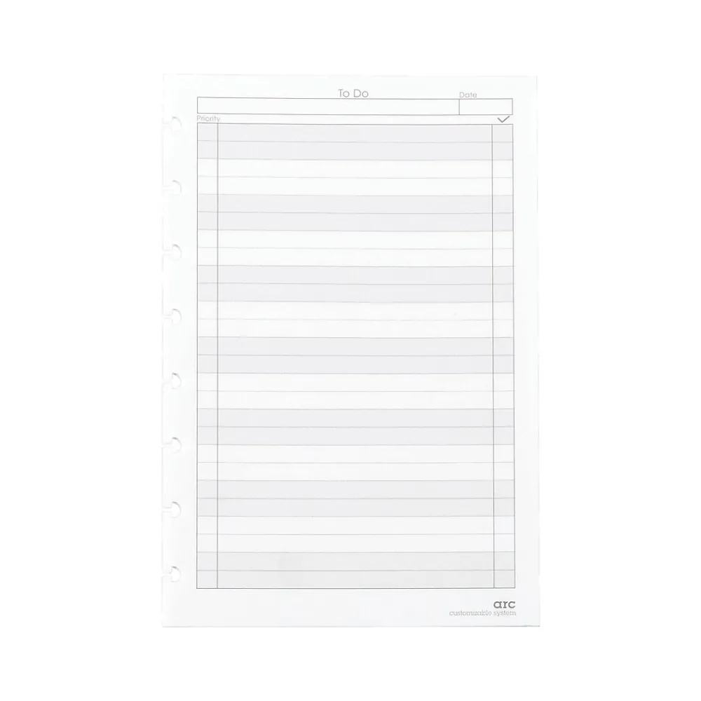 Ensure jobs are completed with this To-Do junior notebook filler paper. Each sheet is made with premium heavyweight paper for durability and a quality look and feel, while the coloring and spacing let you create easily readable lists. This Staples Arc To-Do white or ivory notebook filler paper comes with 50 repositionable sheets, making it easy to prioritize tasks as needed.