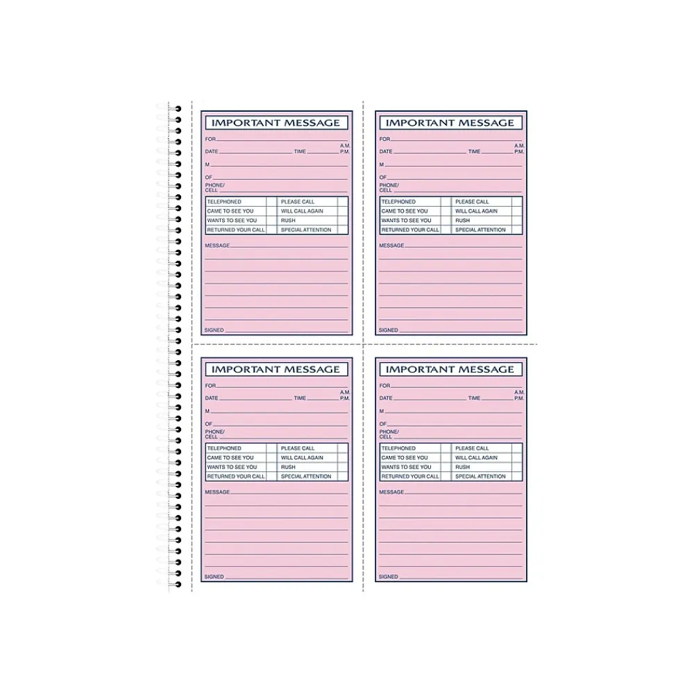 Make sure important information is recorded accurately with this Adams phone message book. Each convenient form features dedicated space for callback numbers, names, and reasons for calling. The two-part carbonless format makes it easy to archive copies of each call for future reference, and the spiral binding lets you quickly flip through previous pages. This Adams phone message book contains 200 form sets, providing an ample supply for busy reception desks.