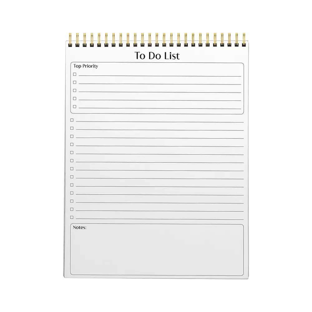 - Tear off sheets as needed or keep them intact to be able to look back on your prior tasks with the double-wire spiral binding on the top