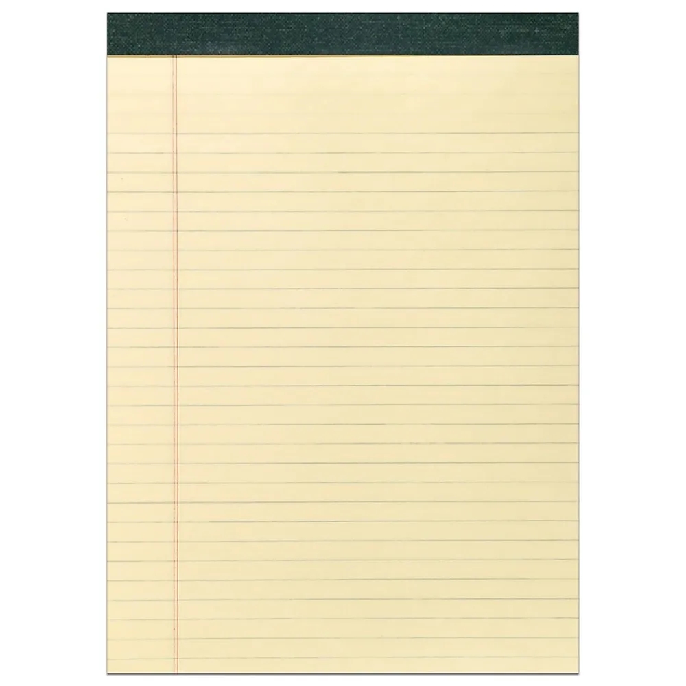 Write lists, ideas and other notes with these canary legal ruled pads. Each sheet in these pads is legal ruled with a double red margin line for organized writing. The pad features 40 sheets of smooth 15 lb. recycled paper that contains 30% post consumer content. The perforated edges let you tear it out without leaving behind a jagged edge. The pads have a chipboard backing for a sturdy writing surface when you are away from your desk.