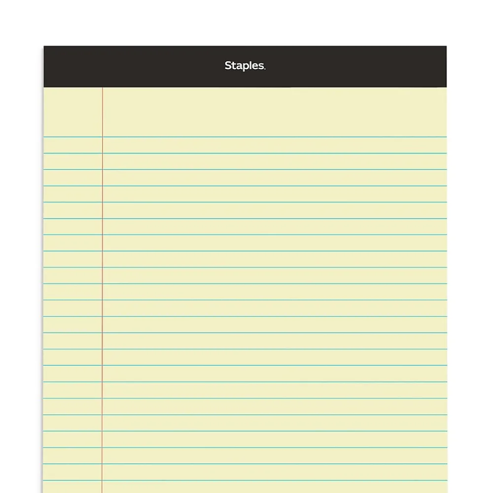 Stock your conference room or lecture hall with these canary wide ruled 50-sheet notepads. The perforations let you cleanly tear off a page, while the wide ruling helps keep your writing neat. These legal-size Staples 8.5 x 14-inch canary wide ruled notepads have a top-bound design so you can quickly rifle through the sheets and find information.