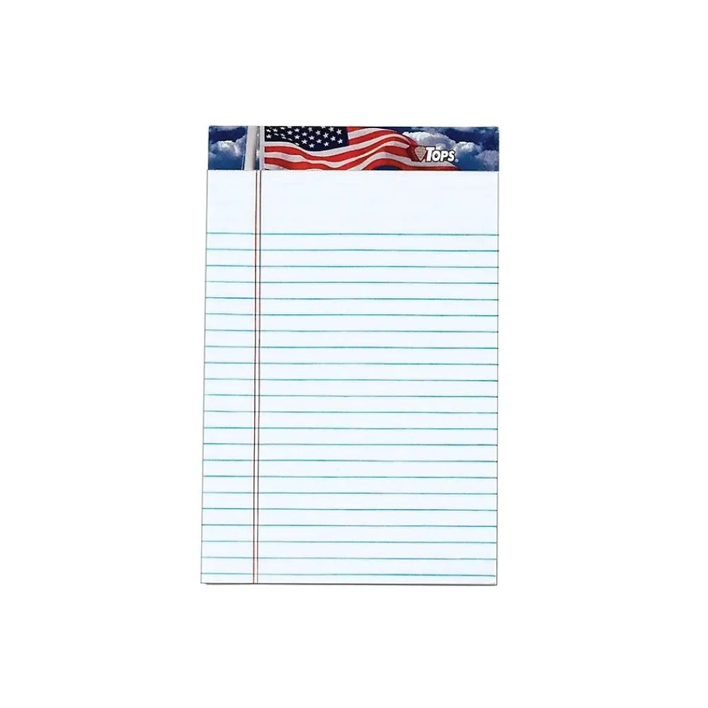 Take notes, jot down memos or write out to-do lists with these TOPS American pride narrow-rule writing tablets. Perforated edges allow for rip-free sheet removal, and the crisp white color lets marker and ink stand out for better readability. These TOPS American Pride narrow-rule writing tablets feature head tapes bearing the United States flag and are proudly made in the U.S.A.