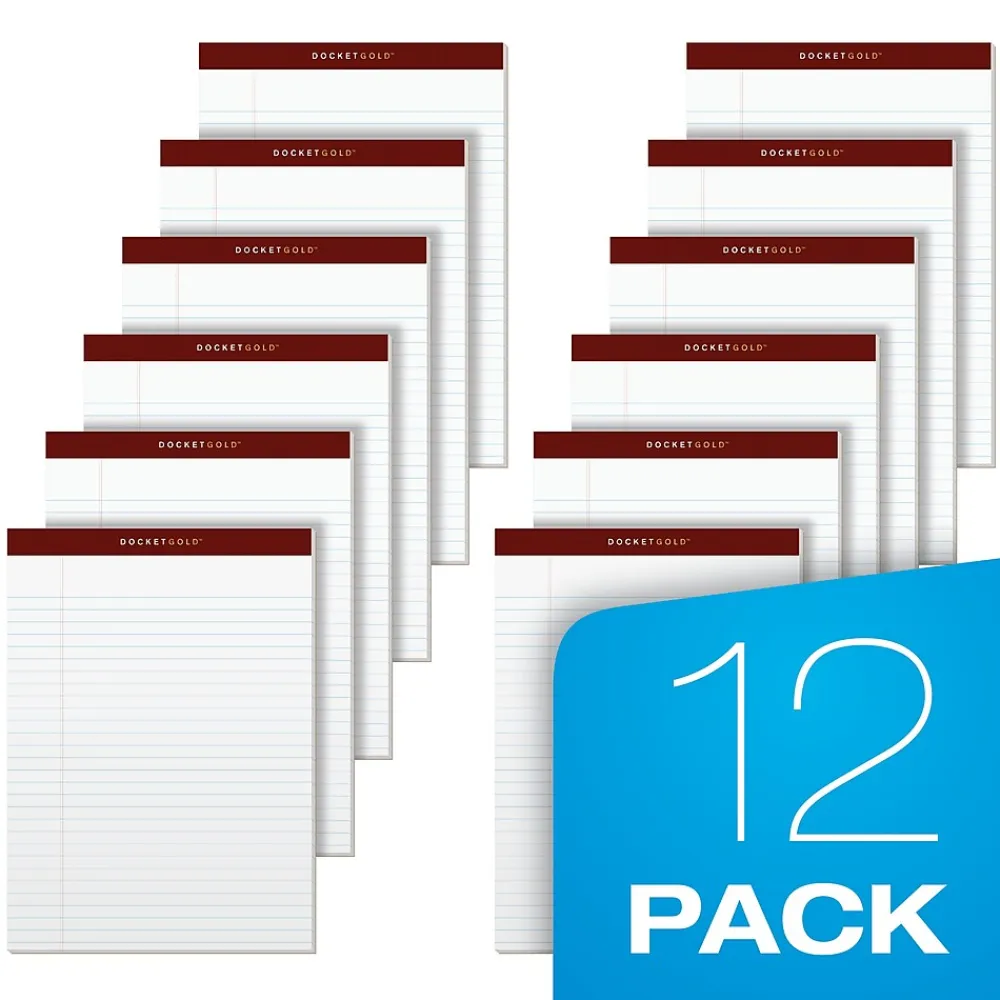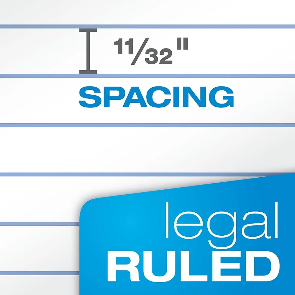 Tops Docket Gold legal-ruled white notepads have premium, 20-pound paper that allows for smooth pen strokes, while the extra-strong backing lets you write anywhere regardless of whether you have a stable writing surface. Legal-ruled lines organize your text into straight, readable lines to reduce confusion and increase legibility. A burgundy marble binding has a professional look and contains the perforations for each page.