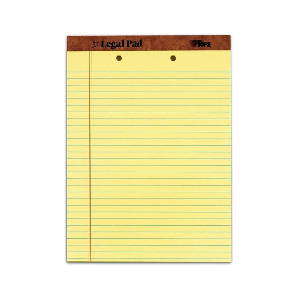 Jot down thoughts, reminders, and other notes with these wide-ruled legal pads. With two-hole top punches, these pads are ideal for fitting into a top-punched binder, making them a portable note-taking option. These TOPS canary pads each come with 50 sheets of perforated paper, letting you easily detach pages so you can keep your notes up to date and organized without damaging them.