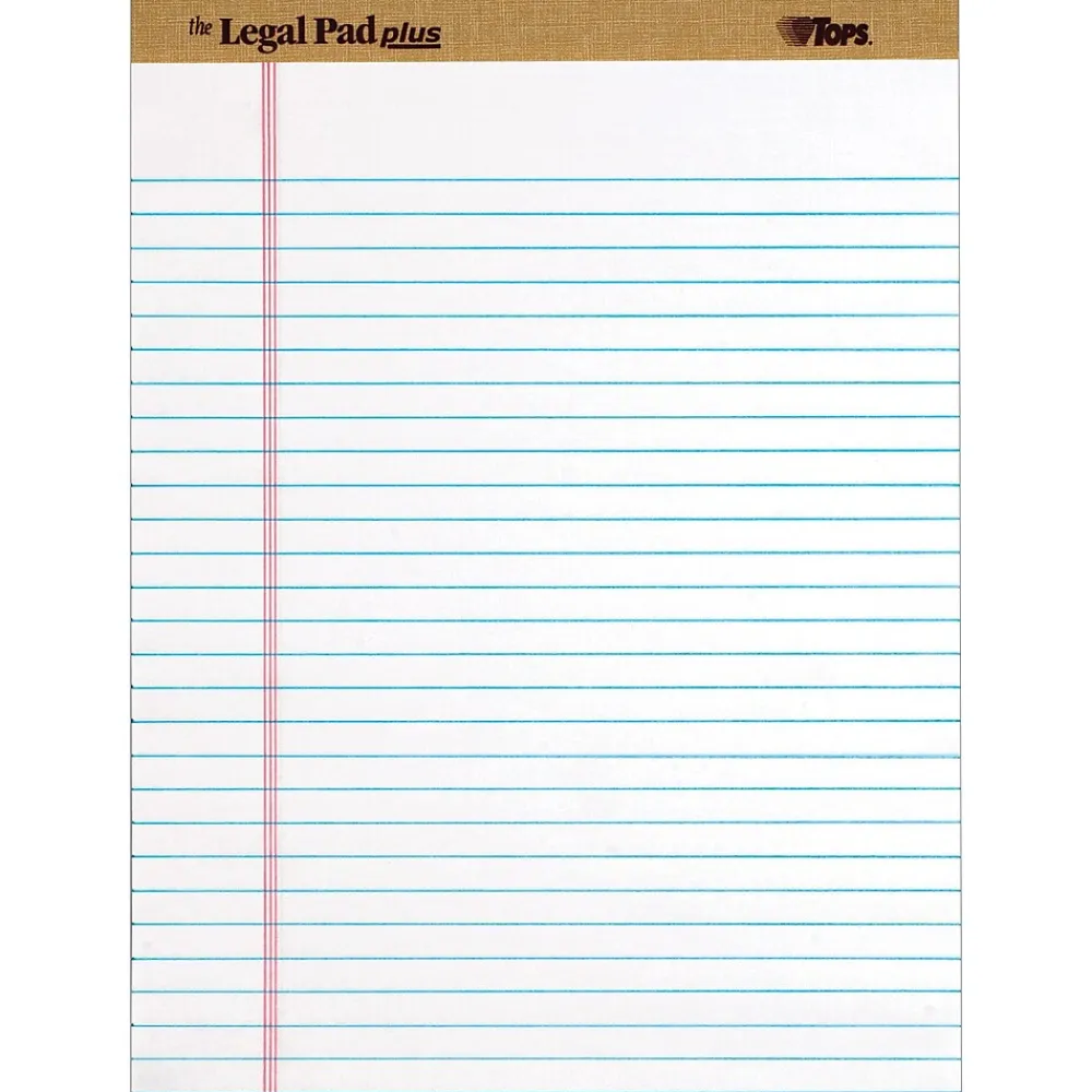 Notepads|TOPS The Legal Pad Plus Writing Pads, 8-1/2" x 11-3/4", Legal Ruled, White, 50 Sheets/Pad, 12 Pads/Pack (71533)