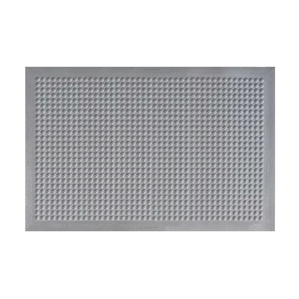 The NoTrax autoclavable bubble mat is a rubber anti-fatigue floor mat with a bubble top design. Offset bubbles on both the top and bottom of the mat provide flexibility and create airflow, resulting in maximum comfort for workers required to be on their feet for long periods of time. An industrial-grade antimicrobial agent inhibits the growth of most gram-positive and gram-negative bacteria and fungus on the mat’s surface. This ensures that the antimicrobial properties won’t wear-off over time like many post-applied topical agents. Although intended for use in dry environments, the top surface design is easy to wipe clean and the durable rubber compound is highly resistant to many hospital-grade cleaners and disinfectants, so occasional spills can be cleaned up quickly and easily. Molded beveled edges on all four sides eliminate trip hazards by allowing for easy access onto and off the mat.