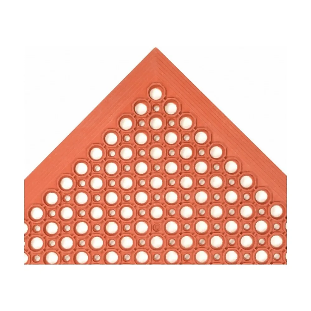 The NoTrax Competitor is a cost-effective lightweight anti-fatigue mat with molded-in beveled edges for a more workstation-oriented environment. It’s made of general-purpose rubber and has a lightweight design, making it perfect for applications where the mat is routinely moved for cleaning. The large hole drainage system facilitates the removal of liquids and debris from work areas, and the molded-in beveled edges reduce trip hazards, allowing for easy access onto and off of the mat.