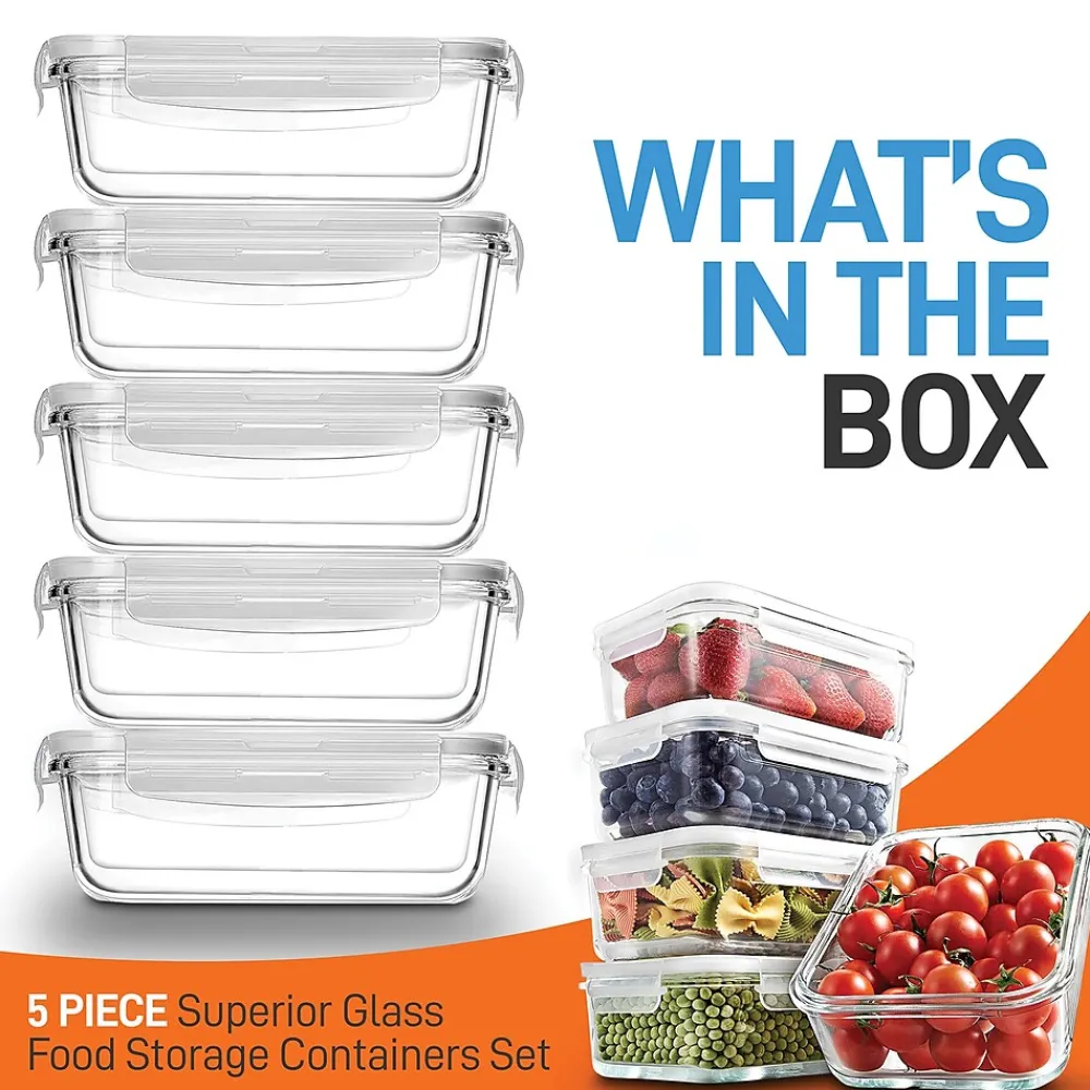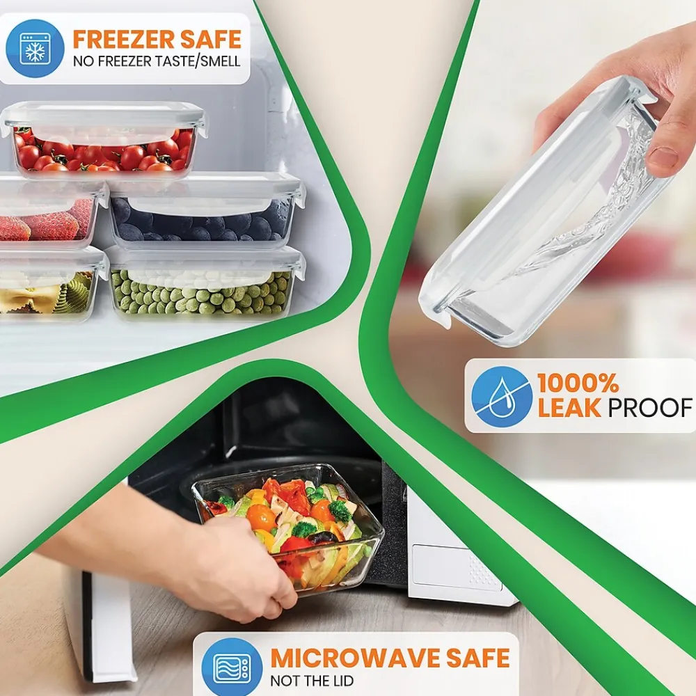 - Leakproof, borosilicate glass meal prep containers