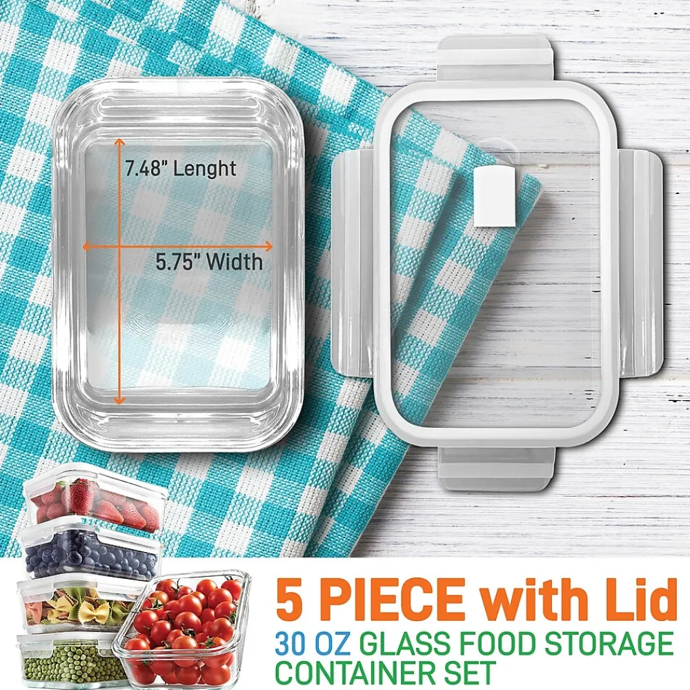 - 10-piece containers set includes 5, 30 oz. containers plus 5 matching lids
