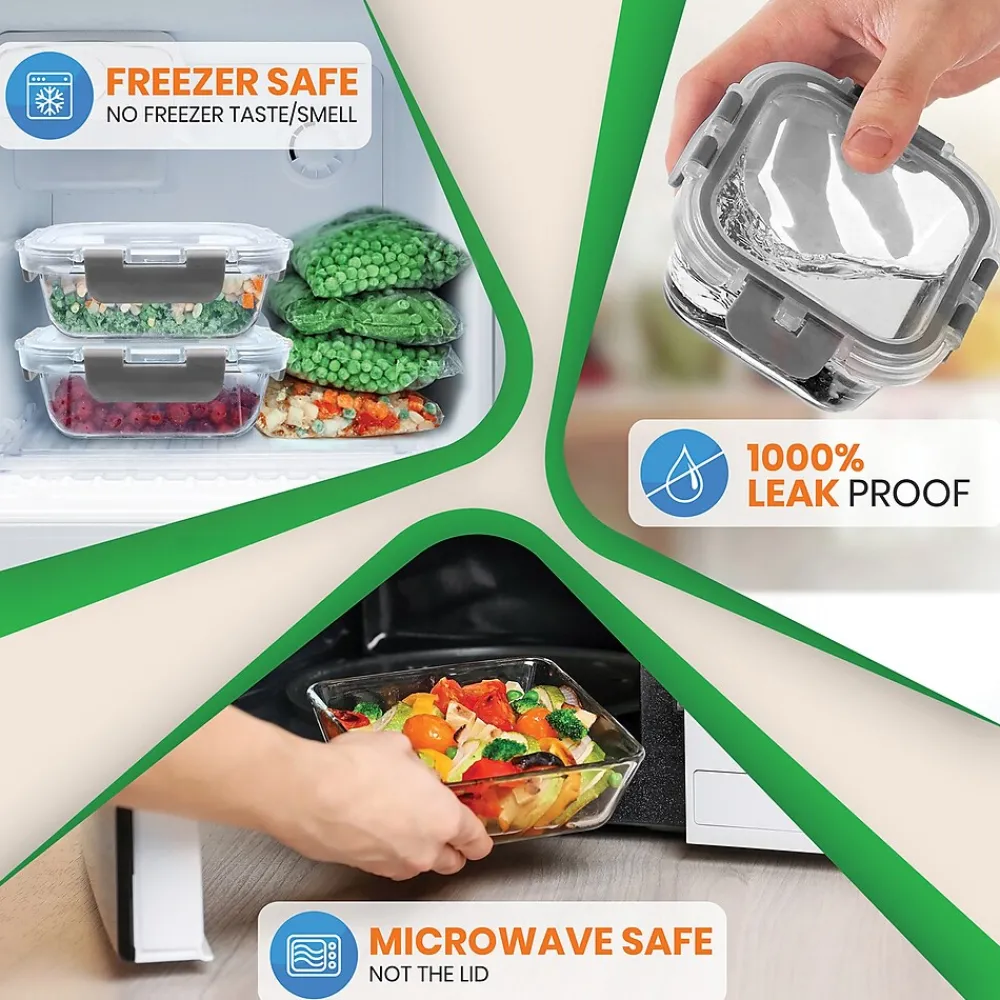 - Leakproof glass meal prep containers