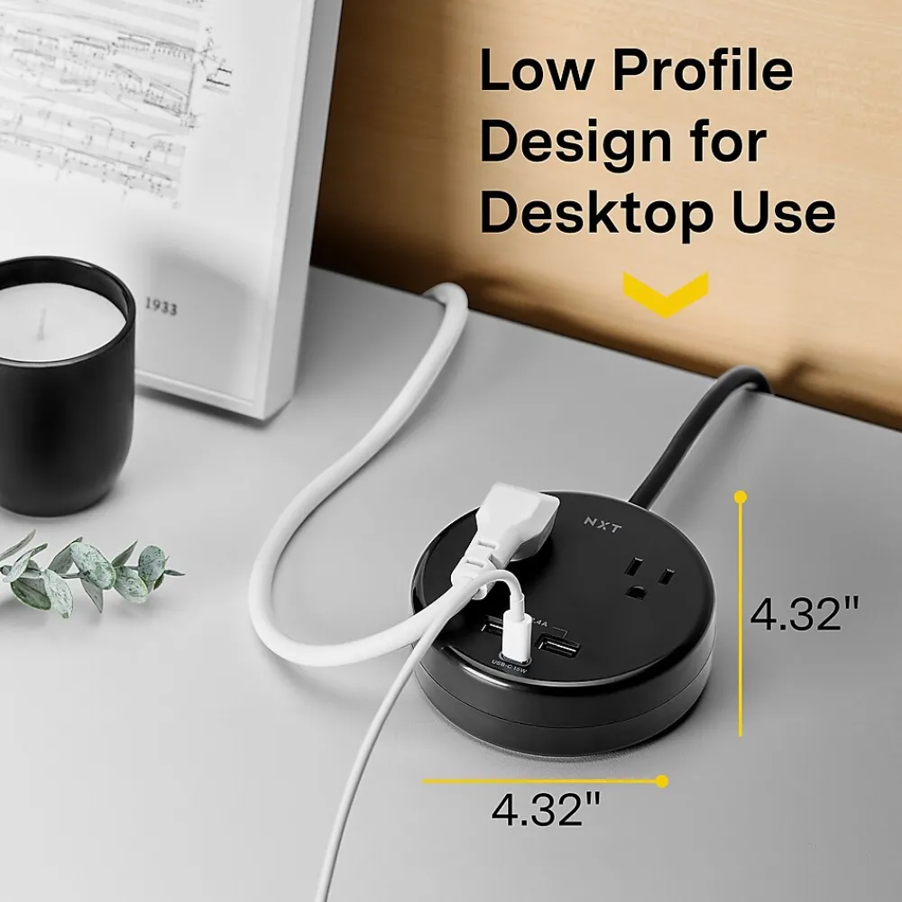 - Compact, low-profile design is a perfect solution for desktops, providing quick and easy power access without adding extra clutter to your workspace