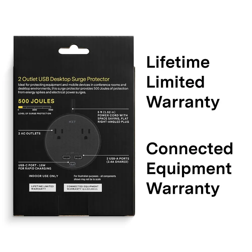Experience seamless power and connectivity in your mini conference room with this mini conference room surge protector. This NXT Technologies compact powerhouse features two outlets, two USB Type-A ports with 2.4A charging capacity, and one USB Type-C port with 15W charging capability. Stay plugged in and charged up as you connect and collaborate effortlessly. With its sleek design and versatile functionality, this NXT Technologies surge protector with two outlets, two USB Type-A (2.4A) ports, and one USB Type-C (15W) port is a must-have for productive meetings and efficient device management.