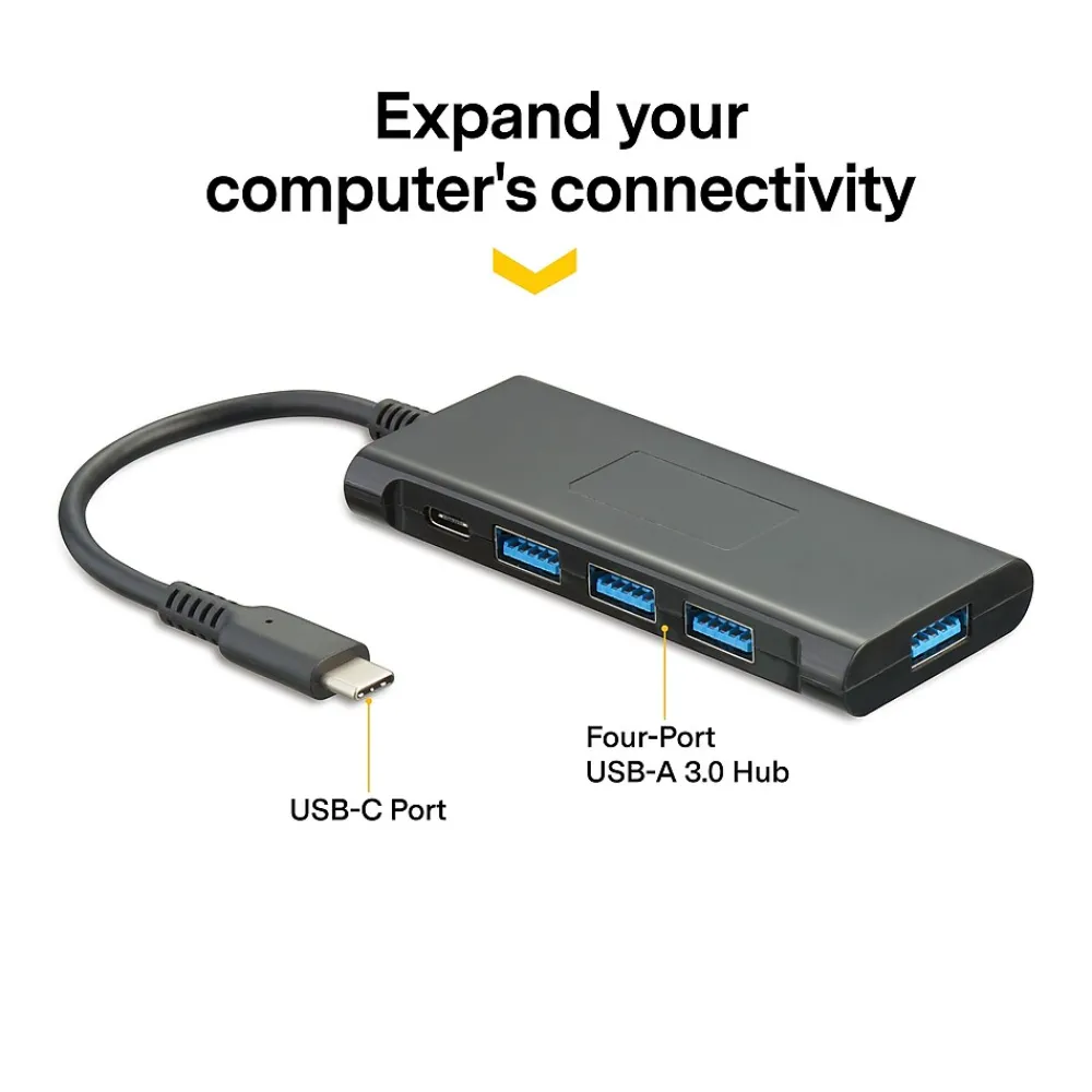 - Four-port USB-C 3.0 hub