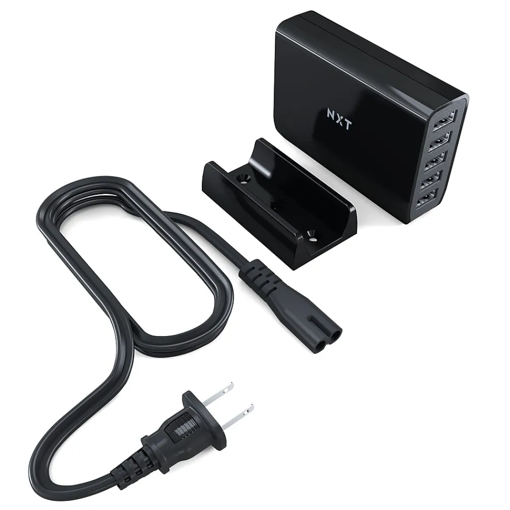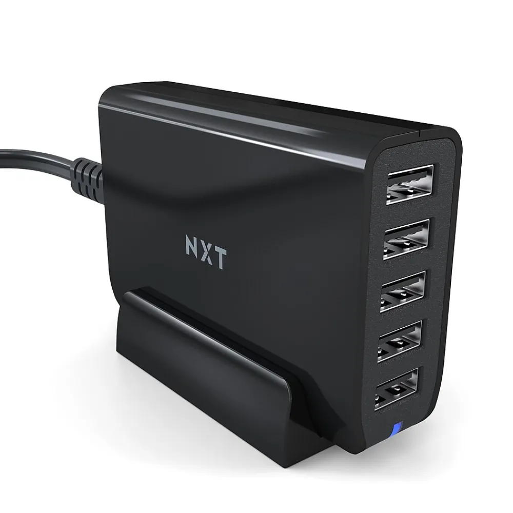Charge up to five electronic devices while using a single outlet with this low-profile five-port USB charging station. The removable base allows mounting to free up space, while integrated cable management helps maintain an organized desk. This NXT Technologies™ five-port USB charging station features an indicator light to let you know when it’s working, and the 5-foot cord length enables convenient placement.