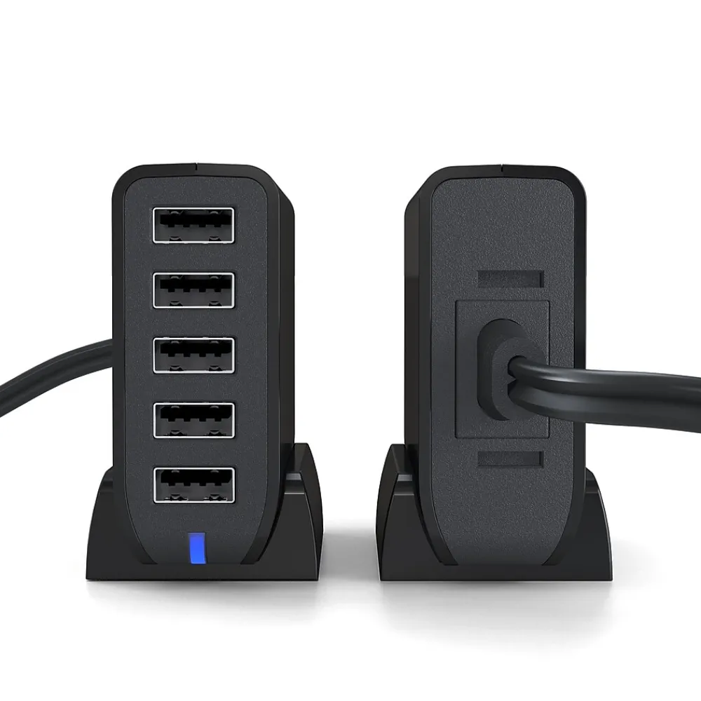 - Five USB outlet charging station is great for office work stations requiring extended reach and extra outlets