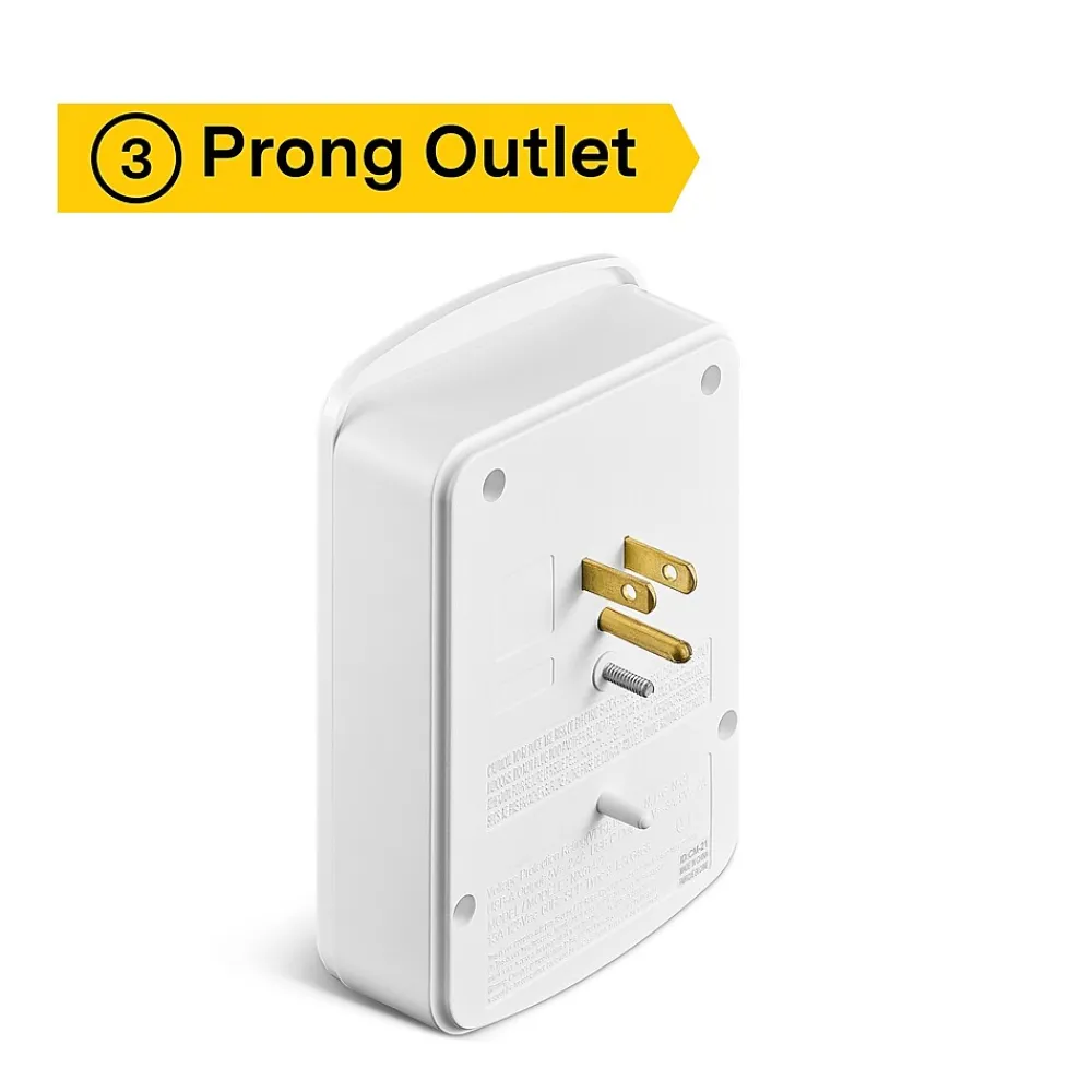 - Center mounting screw secures the surge protector directly to the wall outlet, providing additionally stability