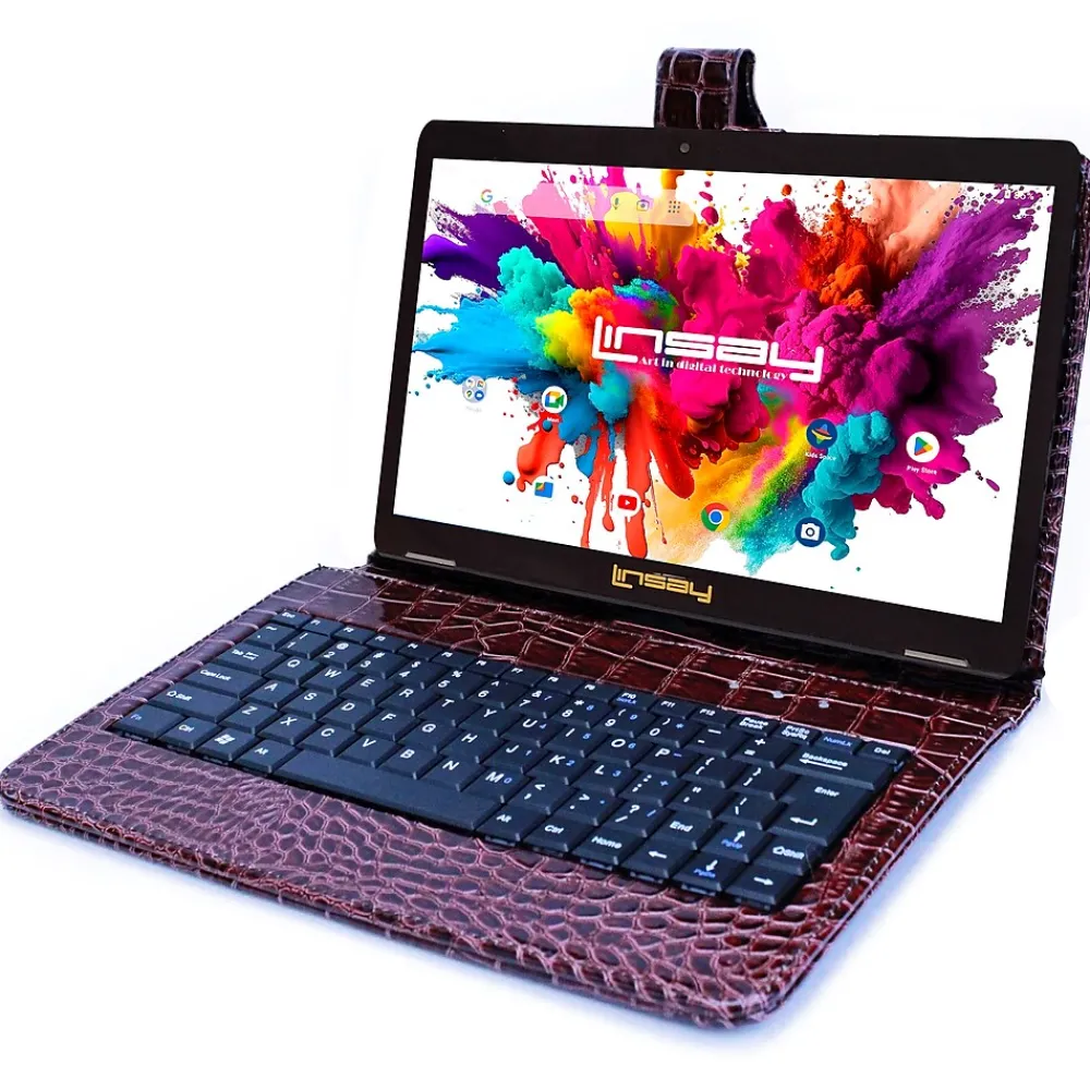Octa Core 10.1″ Tablet, 4GB RAM, 128GB Storage, Android 13, Bundled with Brown Crocodile Keyboard and Stylus Pen<Linsay Discount