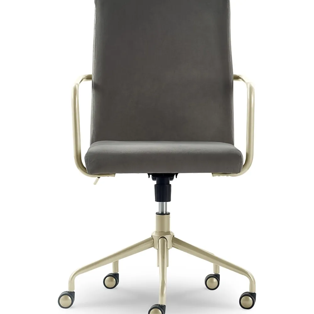 - Lustrous gold metal trim on the base, wheels, and arms adds modern glamour