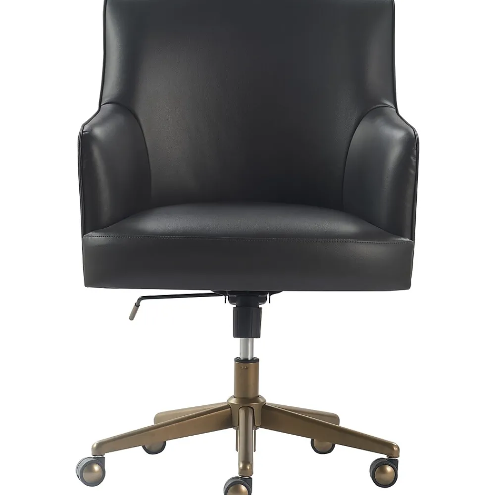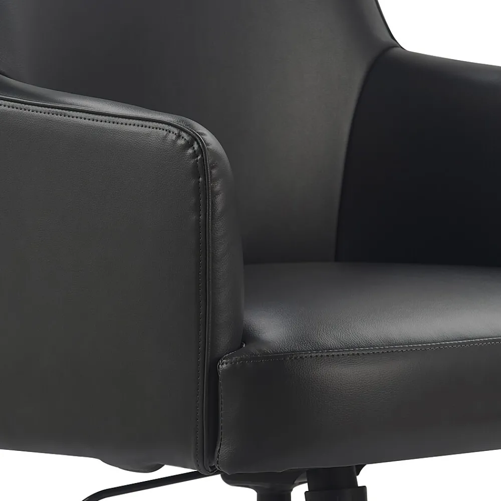 Smart and sophisticated, this Belmont modern office chair by Finch gives your workplace a sense of organization and tidiness. The chair’s modern design features a high back and flared angled arms, upholstered in bonded leather for a tailored look. This desk chair is ergonomic and comfortable with a cushioned seat and padded back/arms for added support. Modeled after high-end office chair designs, this chair is available in a variety of colors and fabrics to complement any workplace, whether it’s a cute teen bedroom or an executive office suite.