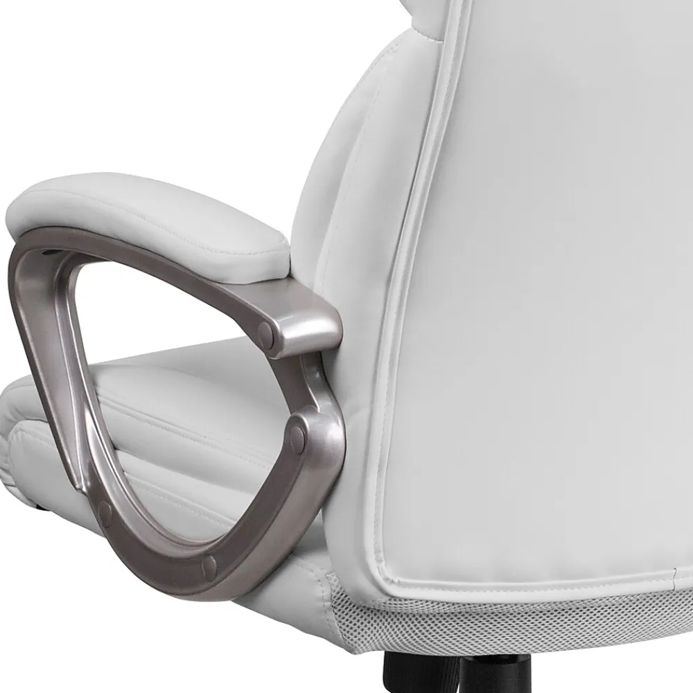- Color: White; Material: Foam, Leather/Faux Leather, Metal, Plastic