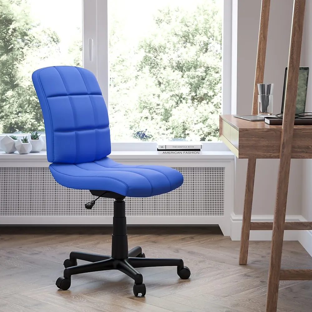 - Armless swivel task chair perfect for use in small office spaces, home offices and dorm rooms