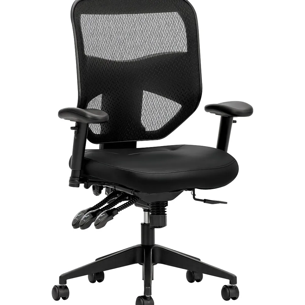 - Deeply contoured seat and back and adjustable arms provide outstanding all-day support for task work