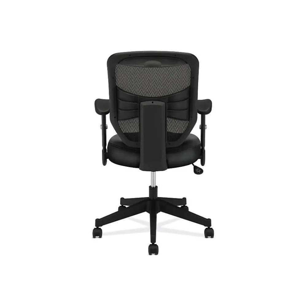A waveform seat and height-adjustable padded arms give this chair an upscale feel at a compelling price. Seat upholstery is Black SofThread leather mesh. Back mesh, frame and base color is Black.