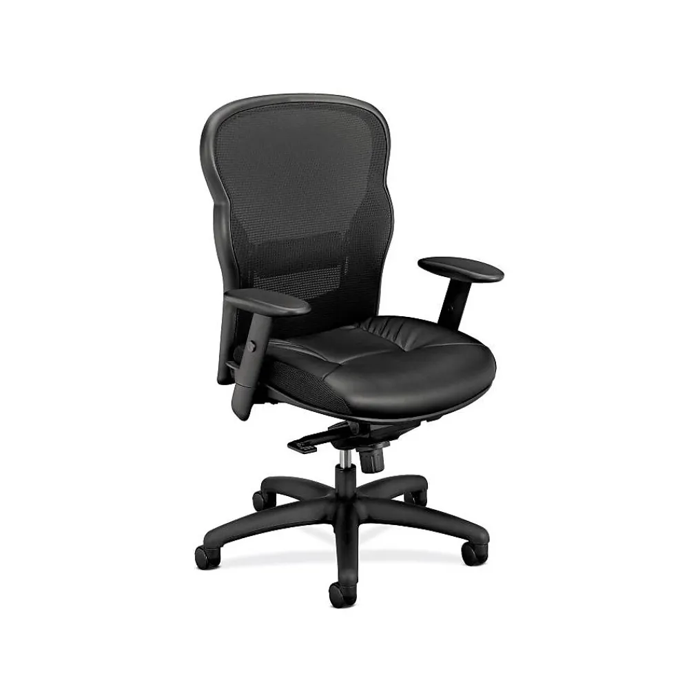 SofThread Leather upholstery, adjustable lumbar support, and height-adjustable arms give this chair an upscale feel at a compelling price. Seat and back SofThread leather color is Black.