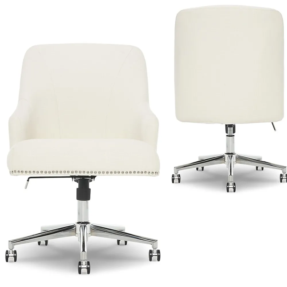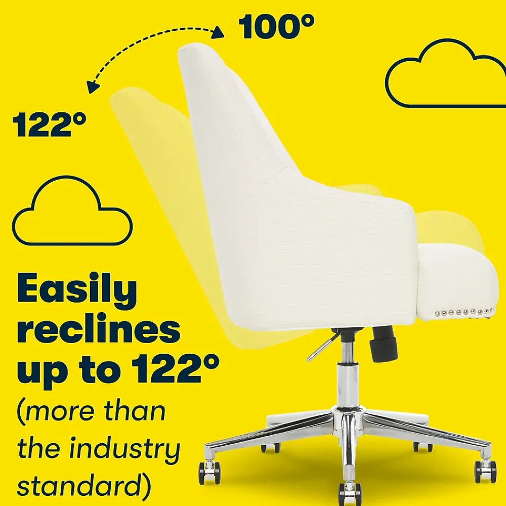 Add a touch of modern elegance to your space with a design that is equally functional and stylish. This expertly-wrapped, neutral design is height-adjustable to tailor your professional space. The chrome-finished, stainless-steel stand offers you 360-degree swivel and casters for easy mobility. The memory foam seat and arms with pocket coils feature renowned Serta comfort, perfect for home or office use.