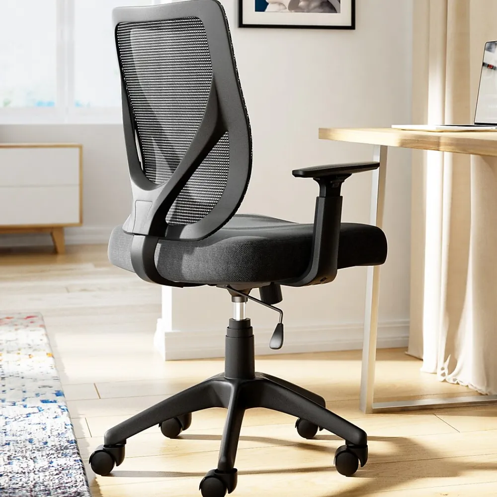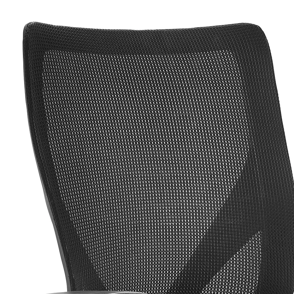 - Black polyester seat with breathable mesh back for comfort