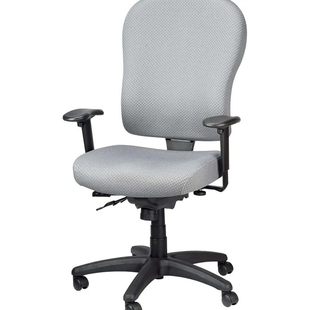 Tempur-Pedic® Ergonomic fabric mid-back task chair provides height and width adjustable arms, center tilt with lock, forward tilt and tilt tension. Chair features a grey polyester fabric upholstery seat to provide durability and extended comfort.