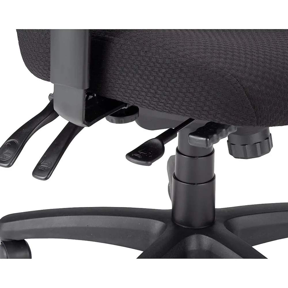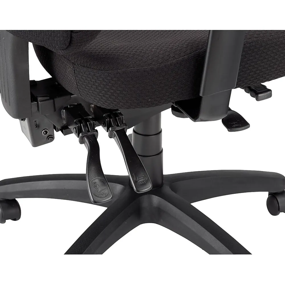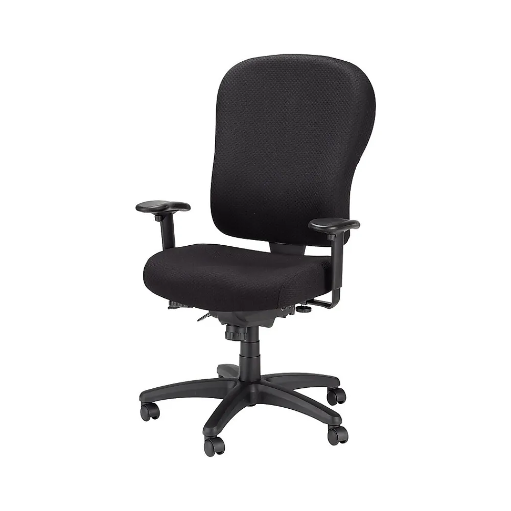 Create a custom seat for virtually anyone in the office with this Tempur-Pedic mid-back office chair. With TEMPUR material memory foam, this desk chair combines cushioned support with even weight distribution for a more comfortable seat, while durable fabric upholstery delivers long wear. Adjust the arms outward to easily handle larger frames, and use the pneumatic seat height adjustment to level up and meet your work surface. A stable five-star base features dual-caster wheels, letting you roll your way across the office over carpet, tile or chair mats. With a range of tilt-control options, this Tempur-Pedic mid-back office chair lets you set it easily for personal comfort.