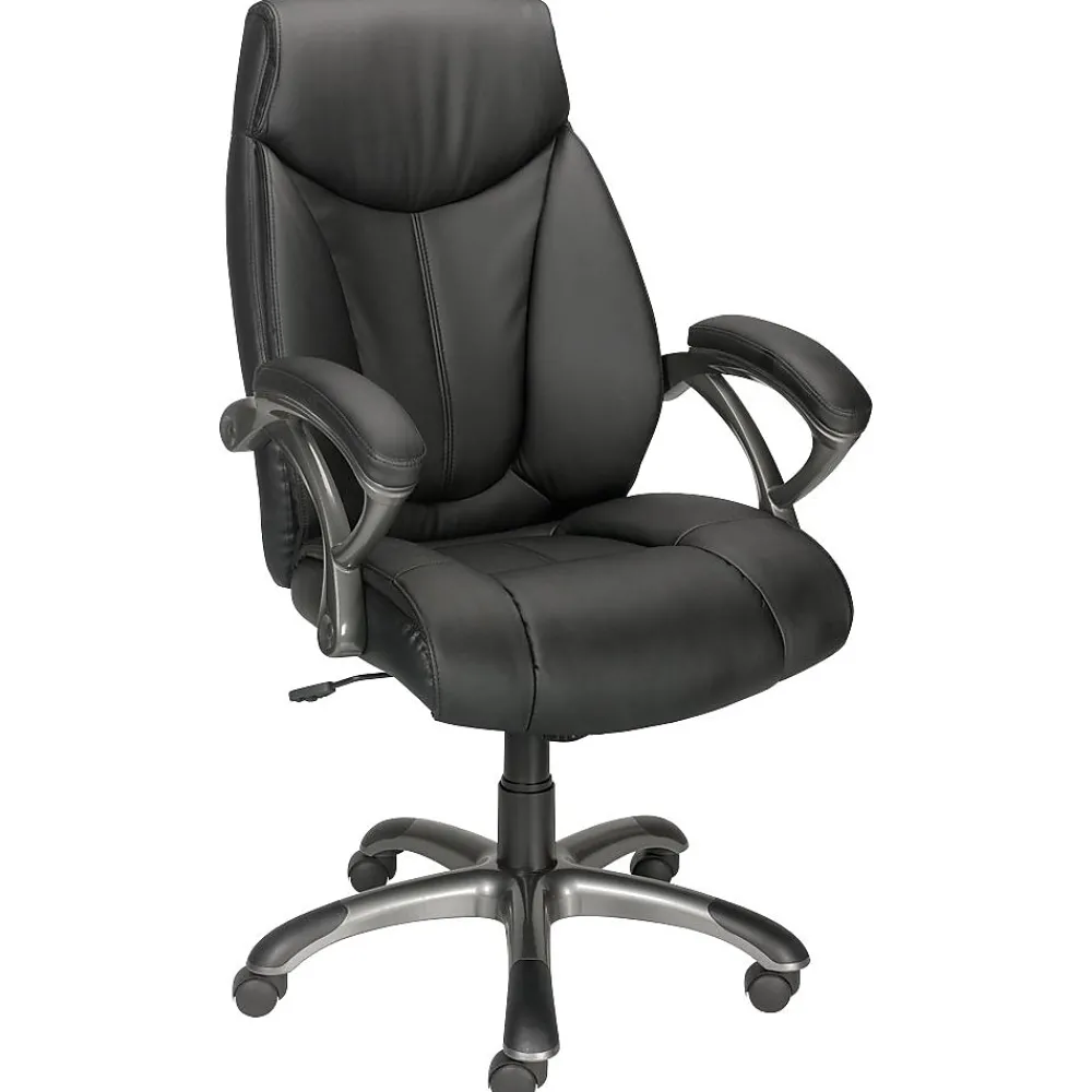 Made to prevent lower back pain and fatigue, this premium bonded leather office chair is an ideal upgrade for both comfort and style. The Workplace2.0™ Ramsey Bonded Leather High-Back Manager’s Chair features a padded back, seat cushion and armrest for a relaxing feel plus adjustable seat height and back tilt to fit your preferences. Great for a variety of body types, this sturdy ergonomic desk chair has a large, cushioned seat and sturdy base. With durable bonded leather upholstery, this premium chair will add lasting comfort and style to your home or office.