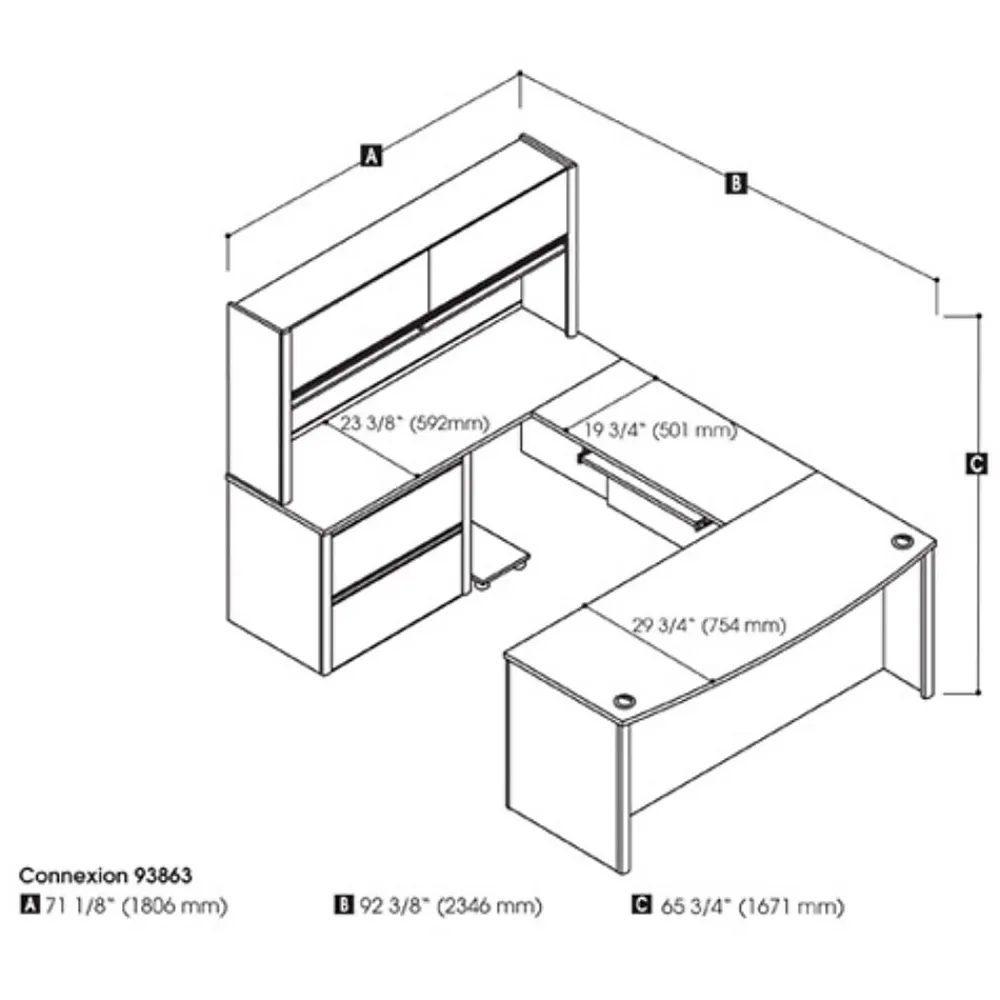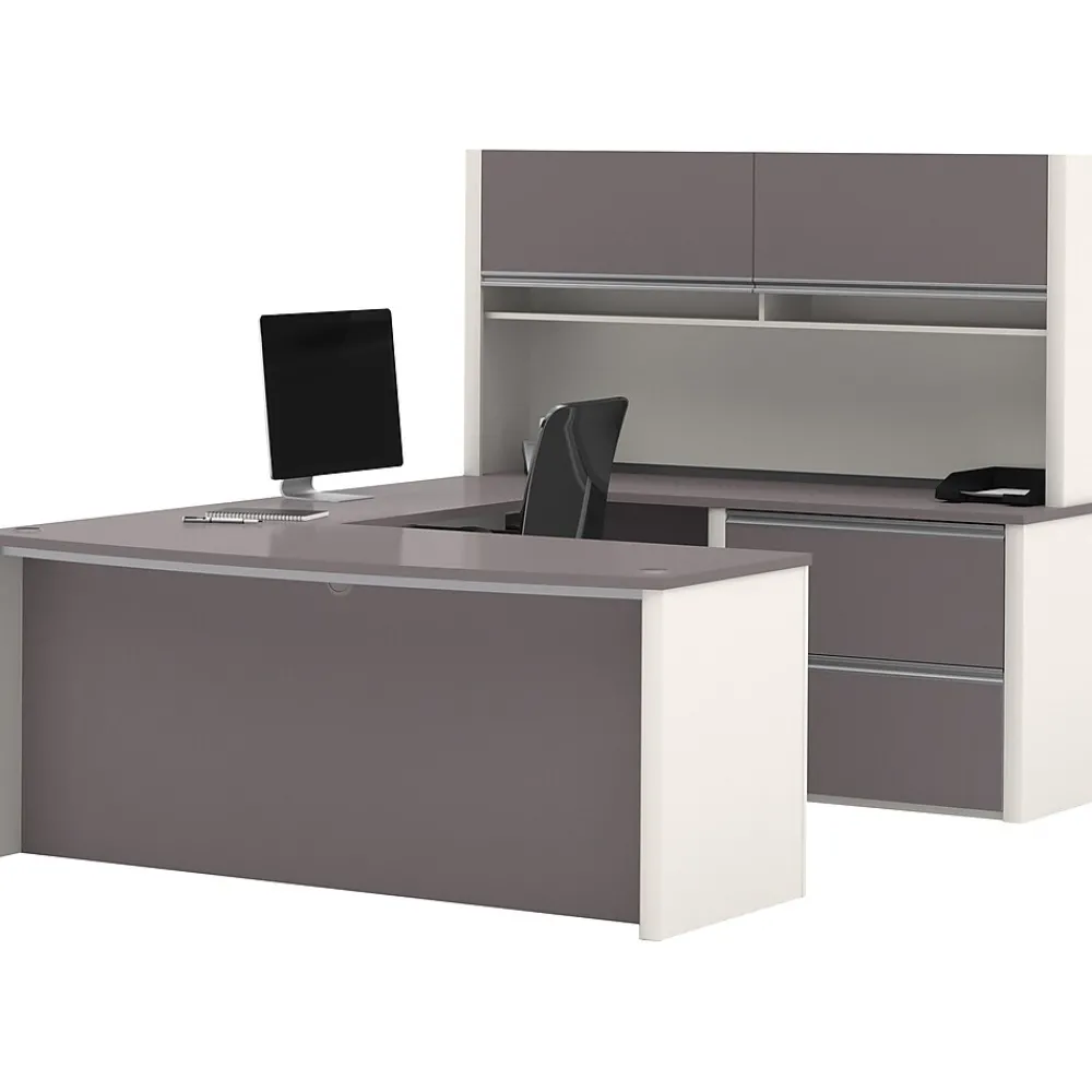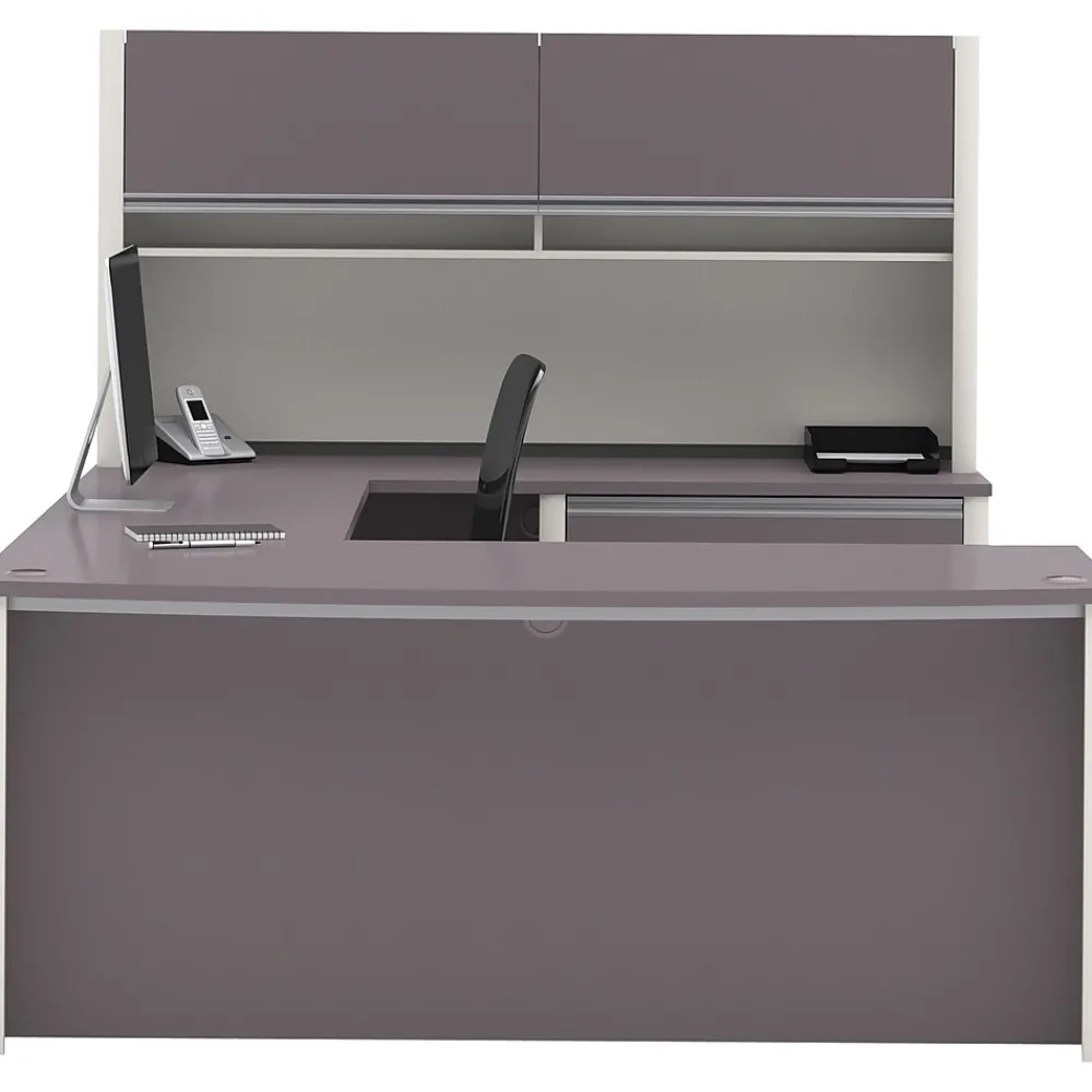 - Matching overhead hutch offers additional storage with 2 flip doors and paper management compartments