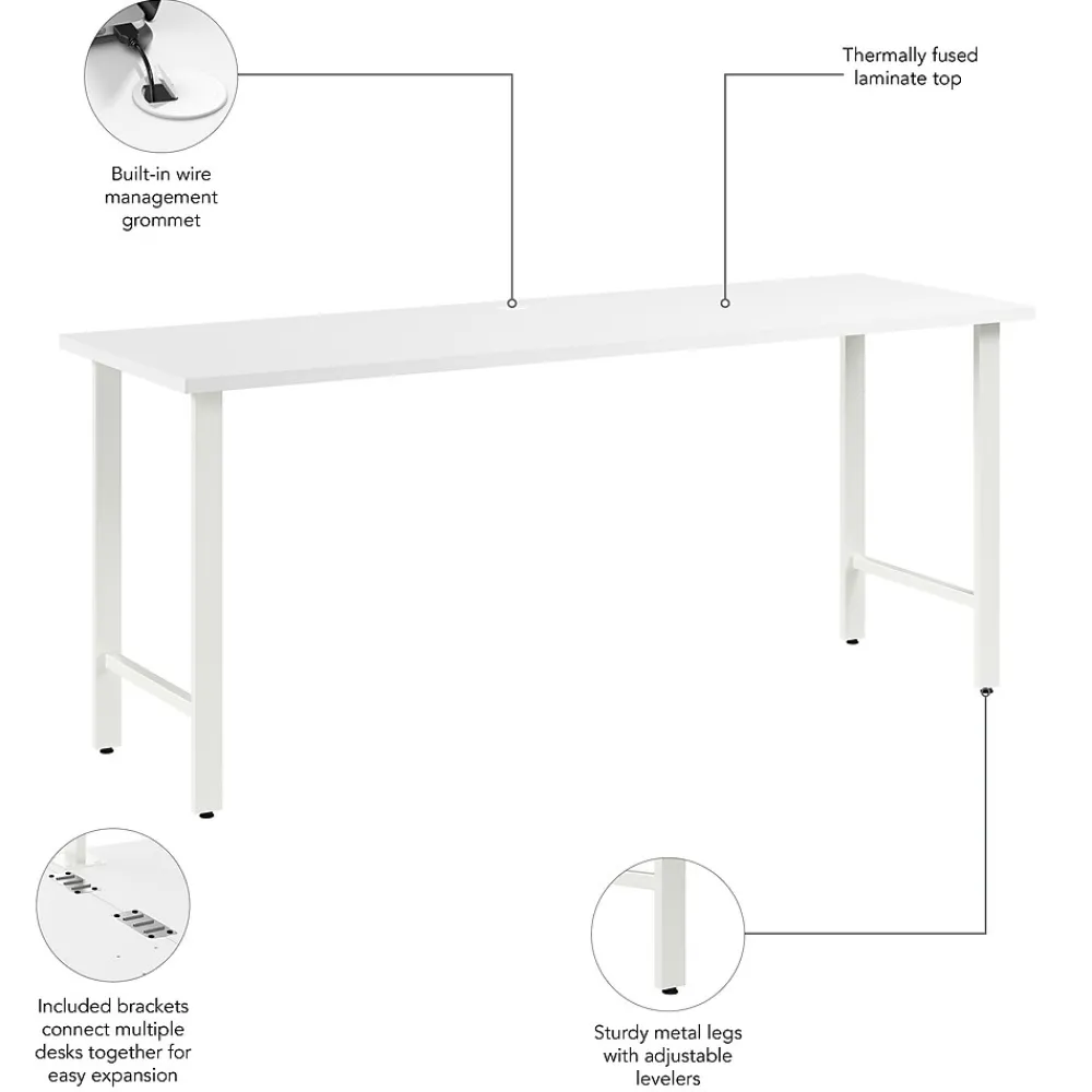 The Bush Business Furniture Hustle 72W x 24D Computer Desk with Metal Legs provides the form and function needed to support your entrepreneurial spirit without breaking the bank. An ideal choice for small to medium-size businesses and home offices alike, each modern desk includes a bracket that allows for workstations to connect as your needs evolve and expand. Spread out with materials and equipment on a durable work surface with built-in wire management and a weight capacity of 200 pounds. The large office desk’s thermally fused laminate finish fends off scratches, stains, and other cosmetic damage that occurs from daily use in a busy professional environment. This computer table desk has been meticulously designed and tested to meet or exceed ANSI/BIFMA standards for safety, durability, and performance and is backed by a 10 Year Warranty. American made with U.S. and imported parts.