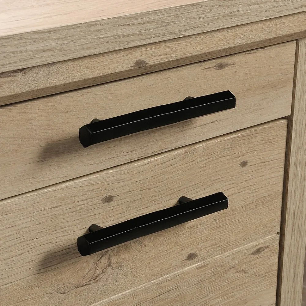 Desks have become an essential addition to the home. With the executive computer desk from the Aspen Post collection, style and function are combined into one grand desk. The top of this home office desk features strong and lightweight 1 panel construction so you can trust it to support your books, while also being light enough to easily rearrange your home office. This computer desk with drawers features two smaller pencil drawers and two medium size storage drawers to hold spare paper, pencils, binders and more. Two lower file drawers with full extension slides hold letter, legal or European size hanging files so your most important documents are organized and easily available. The left file drawer also features a lock for security and peace of mind. This executive desk with storage features a cord management system with two desk top grommet holes to keep your cords tidy and out of sight. To enhance your home office, this desk also accommodates optional Hidden Wireless Qi Charger by Eggtronics 425905 (sold separatelyvisit sauder.com for more information). Featuring quick and easy assembly with patented T-lock drawer system, assembly and set up of this item will be a breeze. Finished in a light Prime Oak, this wood home office desk adds the ideal amount of stateliness and function to create the ultimate home office.