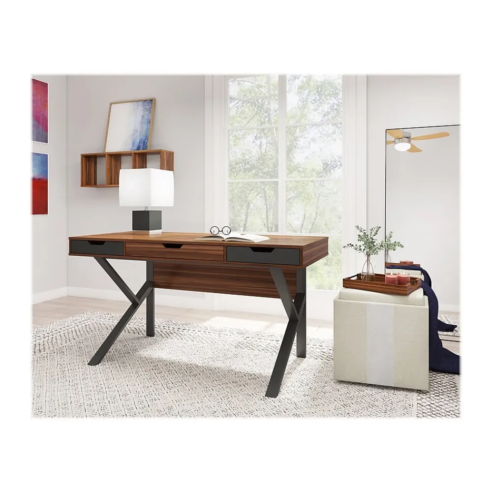 The Whalen Stirling 60″ desk offers a bold mid-century modern look with its two-tone finish work surface and drawer fronts. The desk features three storage drawers providing plenty of space to keep your work area free of clutter.