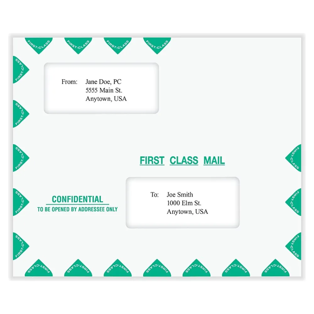 This ComplyRight income tax return envelope with two windows serves as a multipurpose envelope that will dress up every tax return and report from your office. Easily mail large documents and tax returns with an address cover sheet: this envelope is a perfect solution to quickly seal and protect data. The way you present your work needs to match your firm’s professionalism every step of the way. Both the recipient address and return address show through the envelope windows.