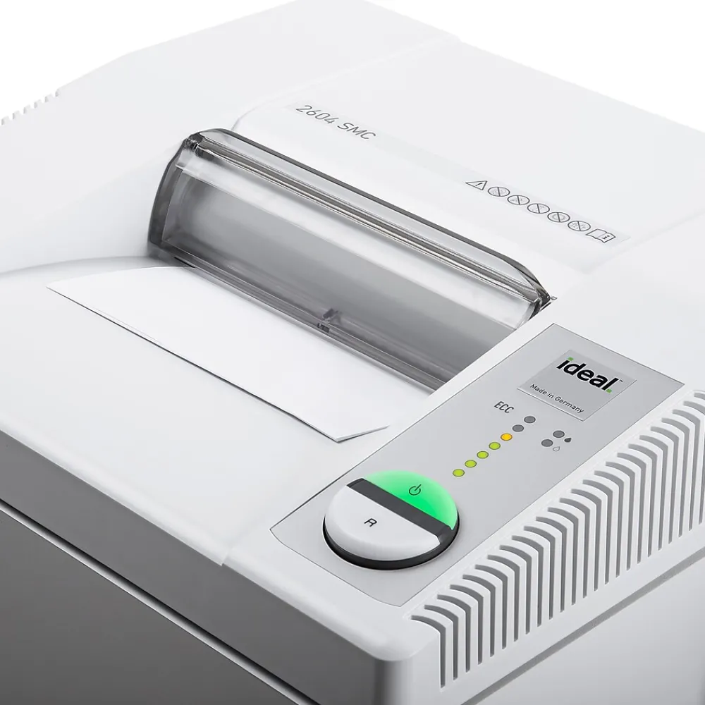 The ideal 2604 super micro-cut paper shredder is a Centralized office shredder designed for 4-5 users and Shreds 6-8 sheets of paper at a time, with up to244 sheets per minute